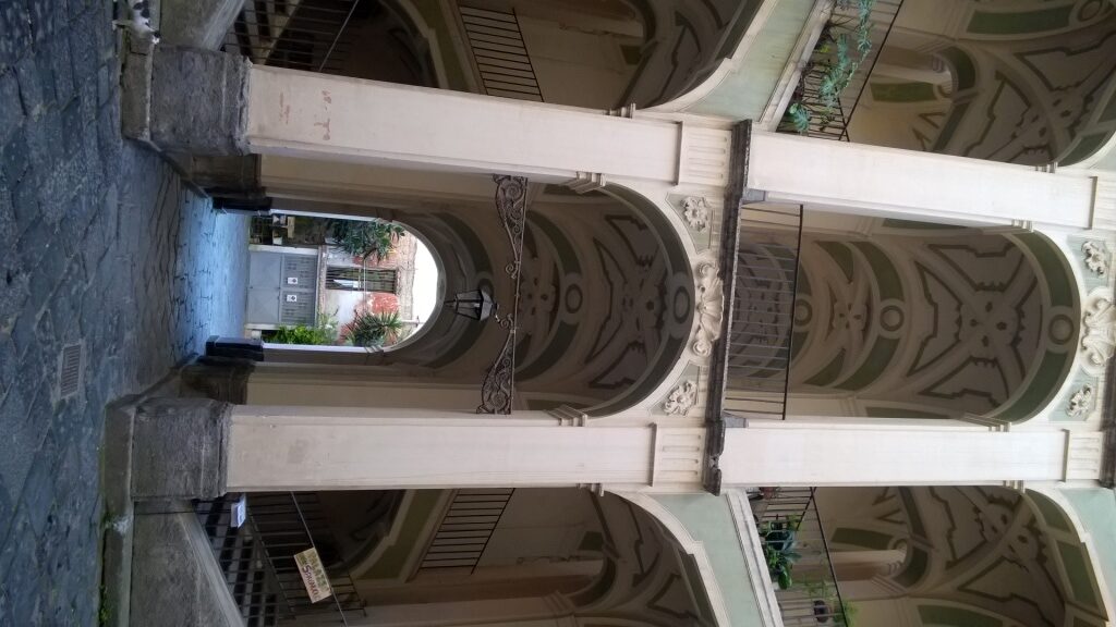 Se, entrato nel Borgo Vergini, avanzi un po’ tra le colorate bancarelle di frutta, verdura e generi vari, Ti consigliamo vivamente di provare a giocare con questo “luogo di meraviglie” per scoprirne i mille volti che lo hanno animato negli ultimi trecento anni. E Ti invitiamo a farlo, innanzitutto, in compagnia di Massimo Rippa, architetto e curatore de “Il sole tra i vicoli. L’inizio di un percorso nel Rione Sanità” (pubblicazione realizzata dalla Municipalità Stella-S. Carlo all’Arena di Napoli, dal quale sono tratte le notizie indicate qui in corsivo).