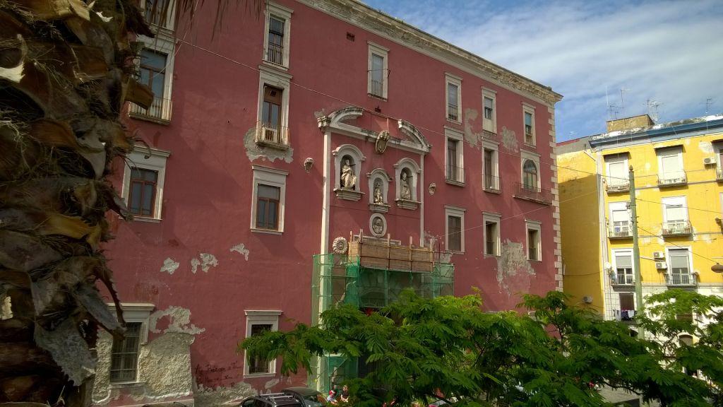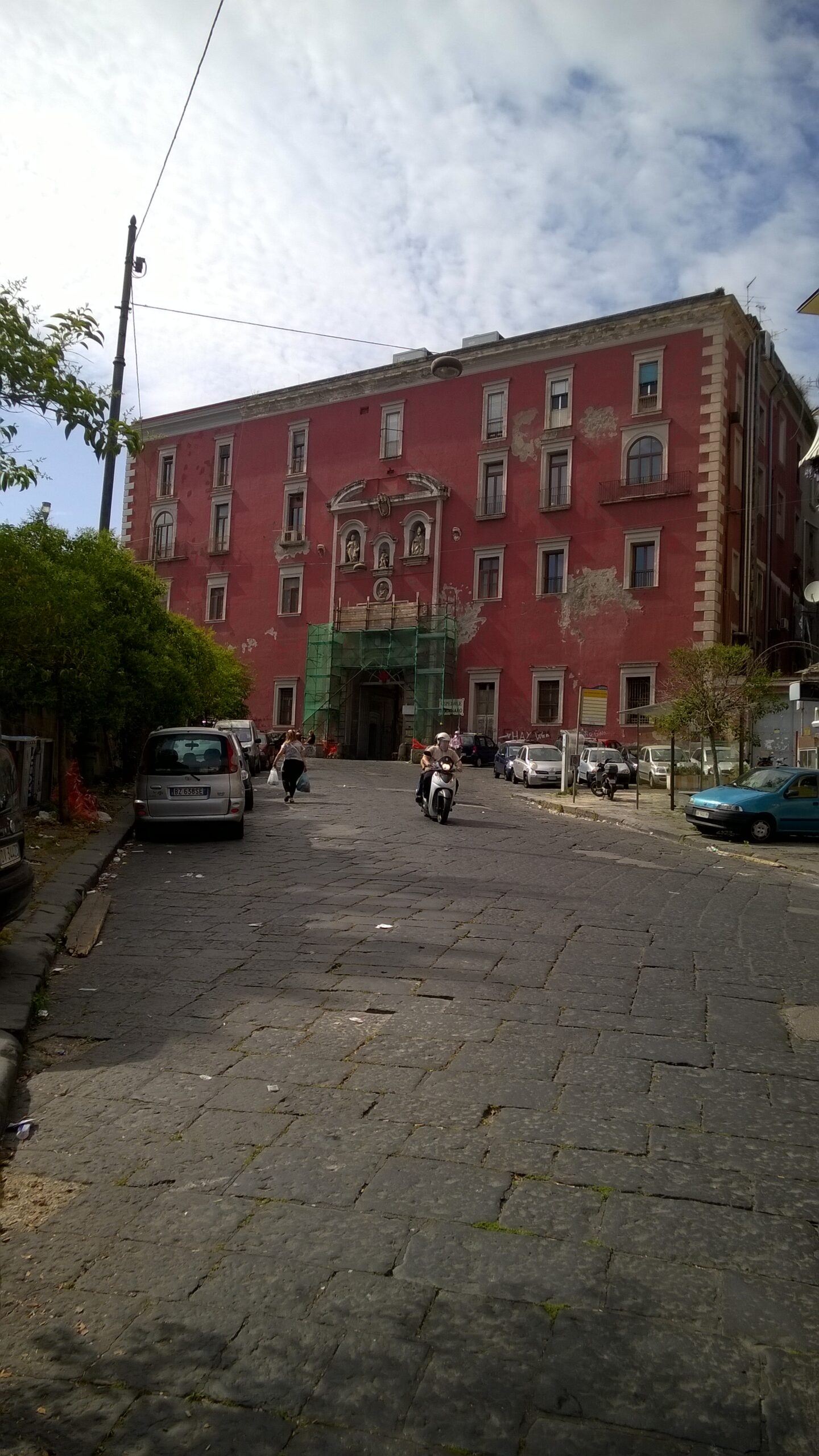 Siamo nella zona del Rione Sanità più vicina alle Catacombe di S. Gennaro dove, ancora agli inizi del 1800, predominava la campagna. Un luogo per monaci o per malati… E infatti l’Ospedale dedicato al Santo Martire nasce, nell’872 d.C., come monastero benedettino e poi, tra il 1440 ed il 1600, fu destinato a luogo di ricovero e cura degli appestati. Oggi è ancora in funzione un presidio ospedaliero pubblico; ma il pronto soccorso è stato chiuso qualche anno fa e le emergenze sanitarie delle gente del luogo sono affidate al Santo protettore, la cui effige – scolpita nella pietra da Cosimo Fanzago – si può ammirare sulla scenografica facciata dell’edificio ospedaliero, accanto a quella di S. Pietro.